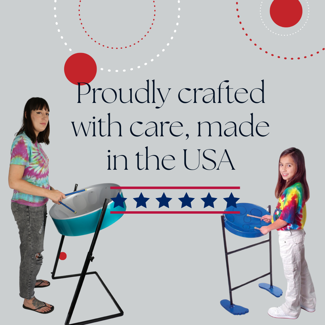 The Jumbie Jam, Hammer series and C-20 steel pans are proudly made in Akron, Ohio, by a team of skilled artisans who understand that great music starts with great tools. Every pan is carefully formed, tuned, and assembled right here in the U.S., using quality materials and time-honored techniques honed over decades of steel pan innovation.
